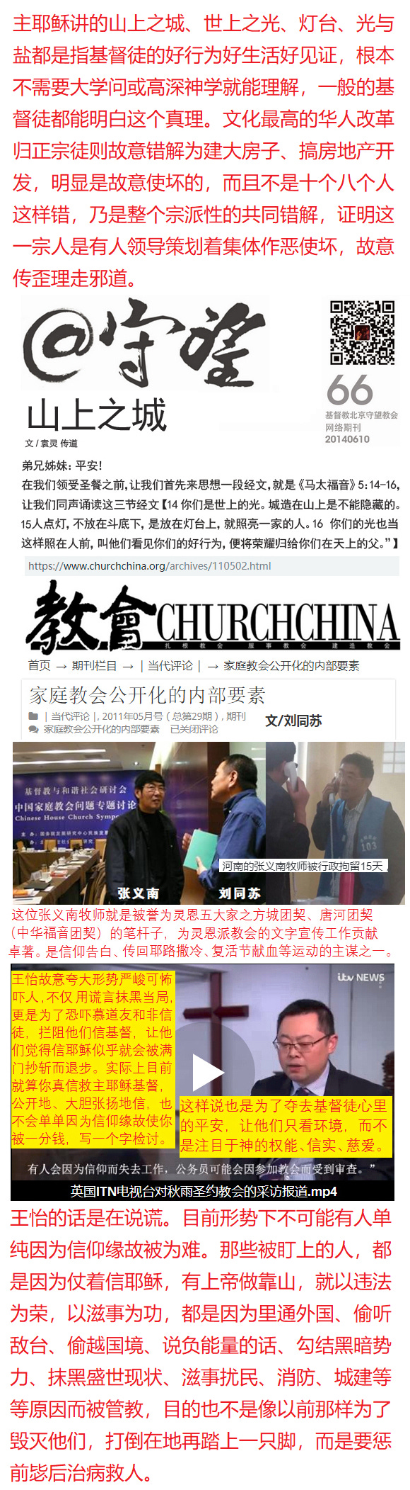 最后再提醒一点,我党在国内建这样的标杆模范教会,目的并不是为了收编国内识字的信徒,而是墙内开花墙外香,作样子给海外信徒看的,让他们听风便是雨,完全找不着南北搞不清状况;因为只是收拾国内信徒的话,我党有一百种方法,根本不需要这么大阵仗。所以像金明日牧师办的锡安教会这样的组织之所以会有,乃是我党让其有的,并不是自然偶然而来,或出自上帝神奇之手。现在我党因形势需要即使完全收了去,也是权柄职责内的事。