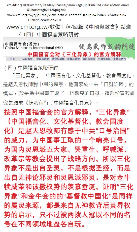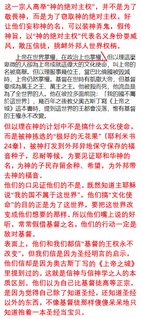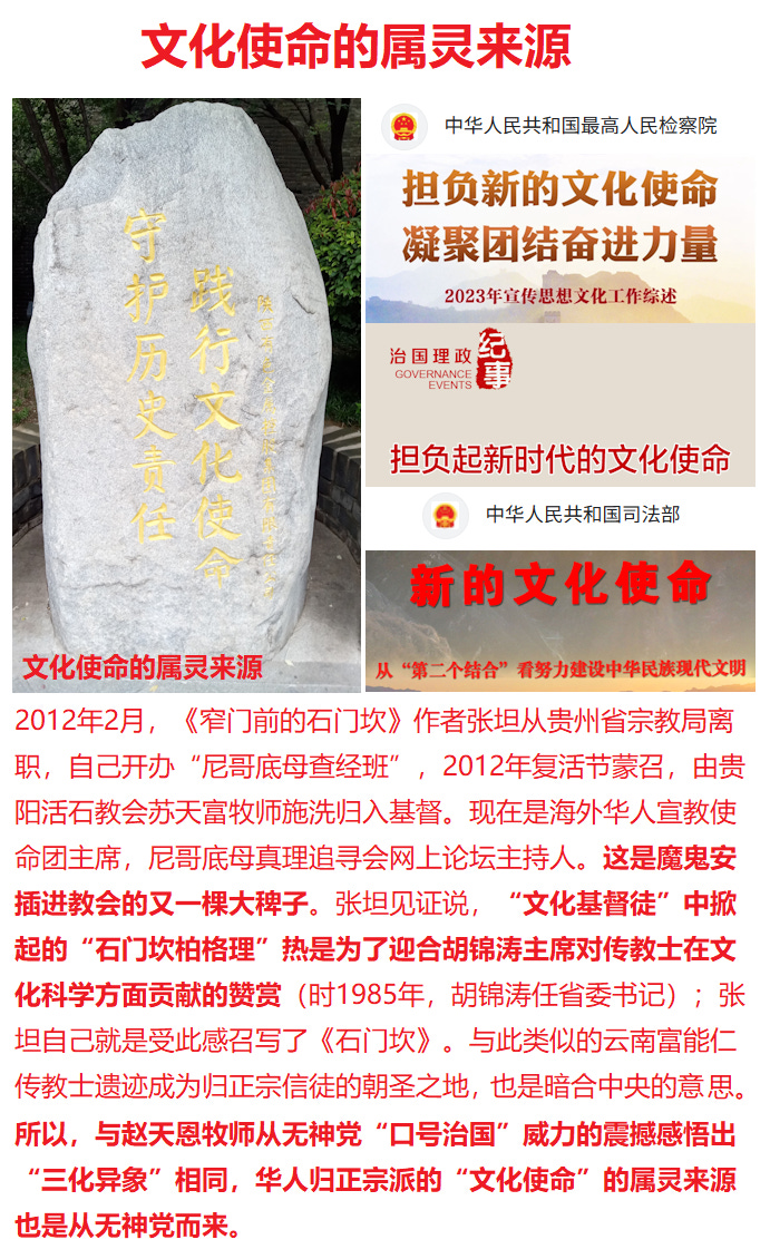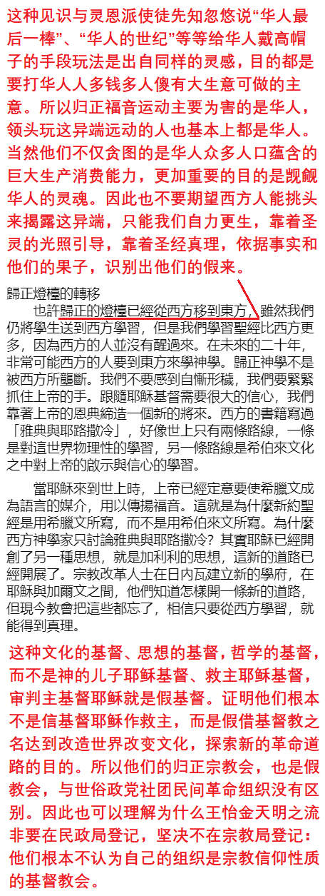 所以,与赵天恩牧师从无神党“口号治国”威力的震撼感悟出“三化异象”相同,华人归正宗派的“文化使命”的属灵来源也是从无神党而来。