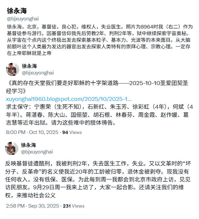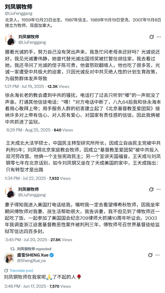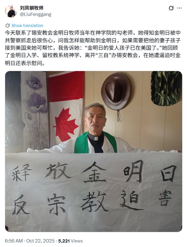 2025年9月,当局发布了新规,旨在将网上宗教活动限制在官方注册的管道; 虽曾向监视他的国安警方表示,他会从锡安教会退休,以便去和在美国的家人团聚,但遭警方拒绝他离开;