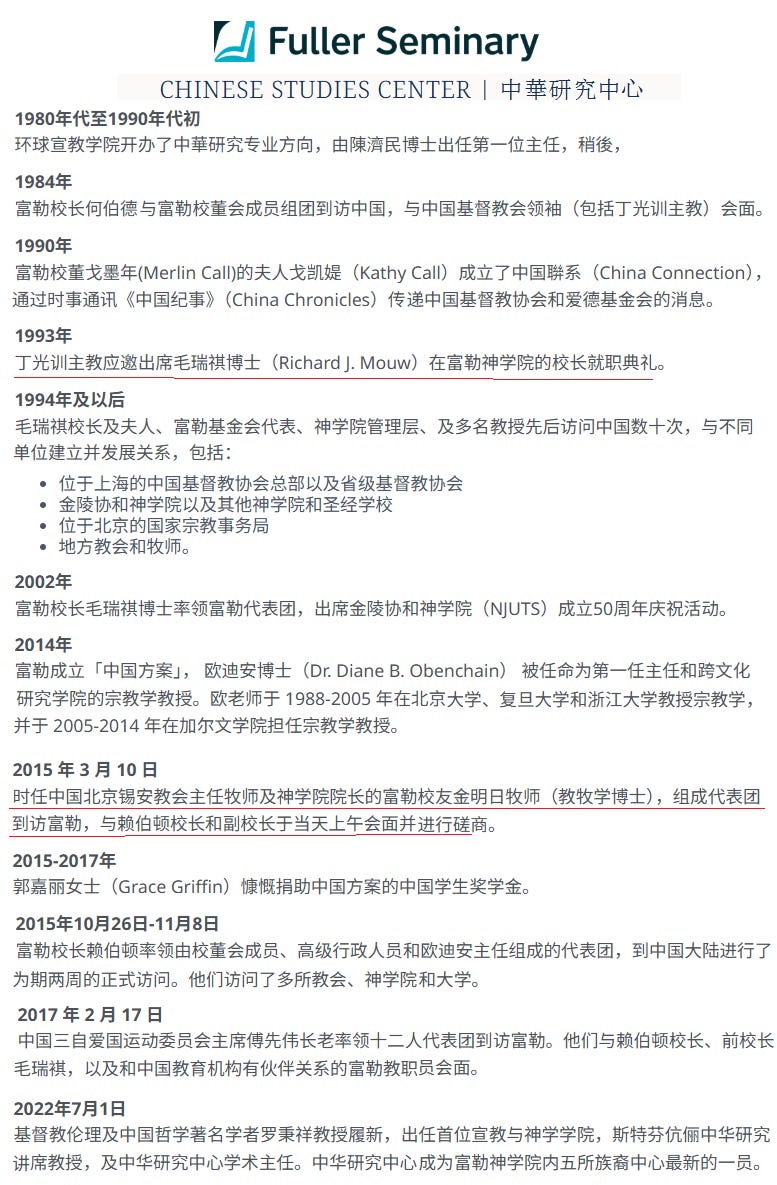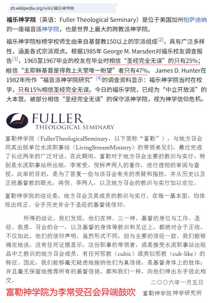 那么金明日牧师去“师生只有15%相信圣经无误”的富勒神学院是装备神学知识吗?鬼才信。富勒神学院既是不信派现代派的大本营,也是灵恩派通灵交鬼派的黄埔军校。你猜猜金明日牧师在富勒神学院能学到什么鬼神学。富勒、普林斯顿(远志明)、耶鲁(刘同苏)三校都是设有“中国研究中心”的,与我官方合作,实际上就是官方有功人士的奖励游玩疗养之地。当时还是三自会骨干的金明日当然重点是去美国生娃,也不能排除是官派奖励出去休闲疗养几年。当然现在这事不能再提了。可以合理推测后年王怡牧师出监后如果被流放美帝,最有可能的就是去这三校之一陶造休养几年,再接受新任务。