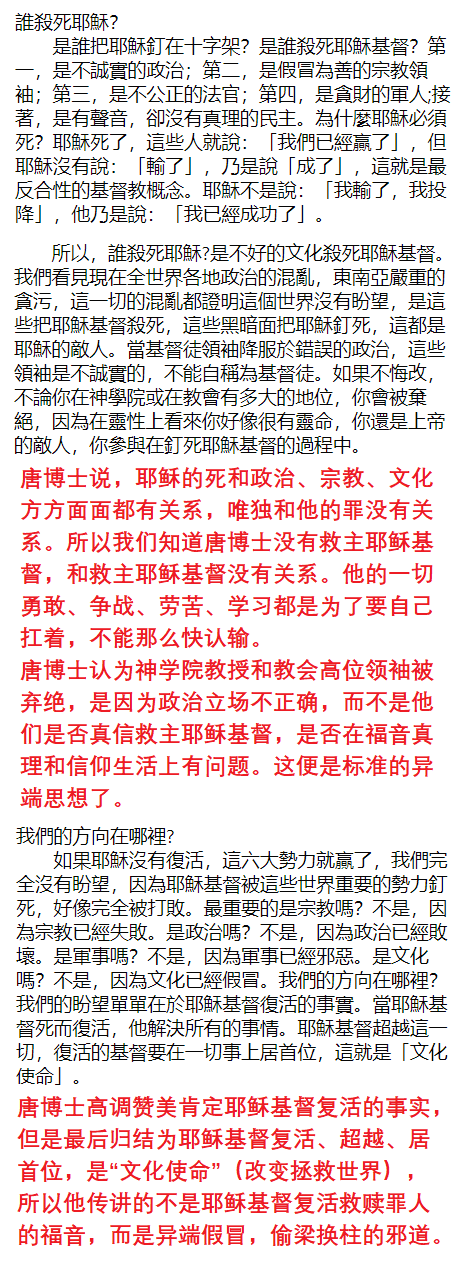 《唐氏不正宗--“正”是主救主耶稣基督,不是归正宗》