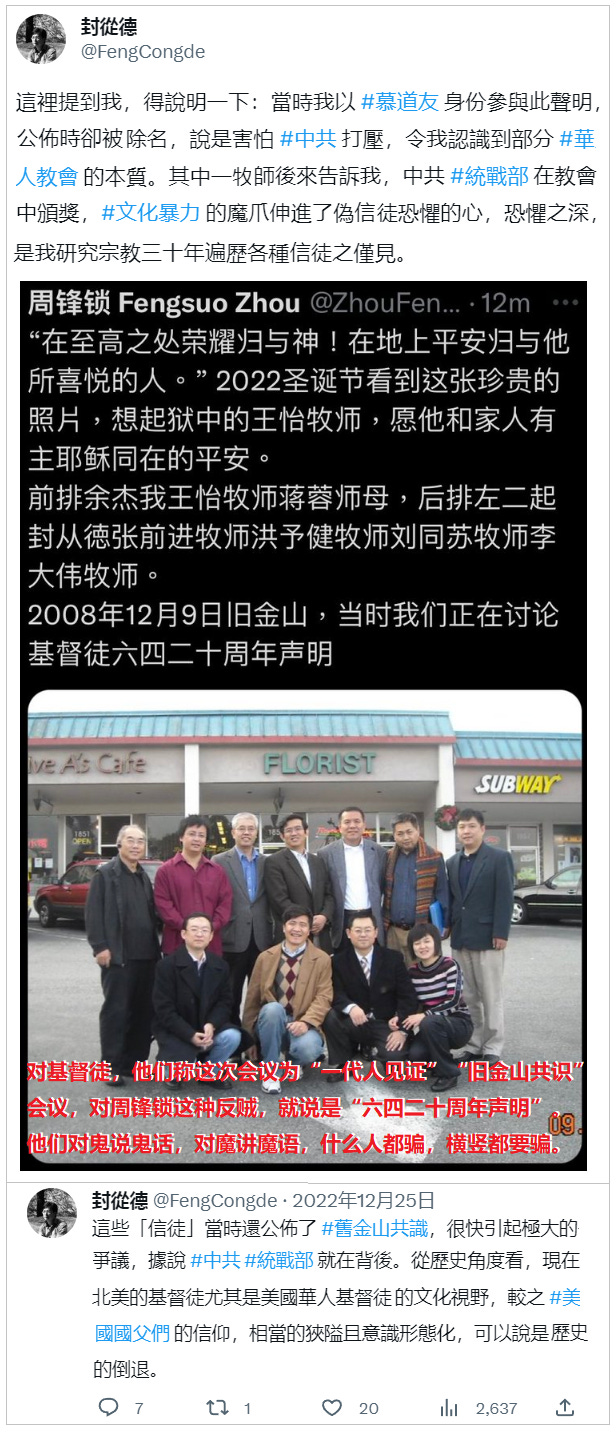 唐崇荣退休,确认王怡是“中国最受欢迎的牧师”,抛出“新冠疫情是上帝对我党抓捕王怡的报应降灾”观点妖言惑众,为假先知王怡站台背书。